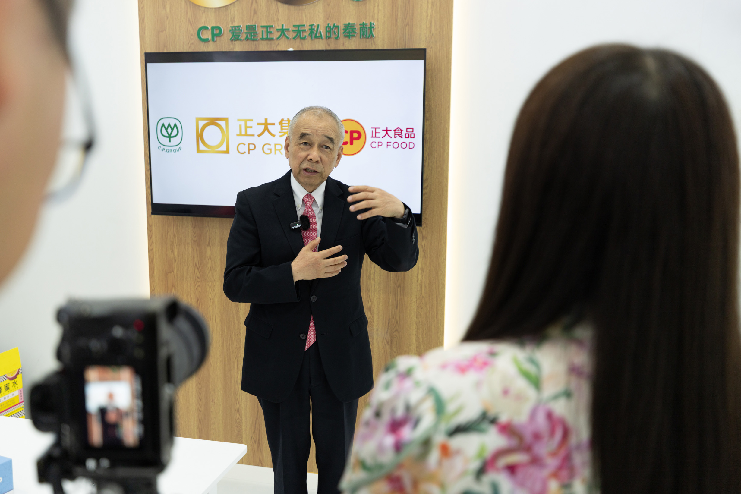 正大集團謝明欣資深副董事長接受中國國際電視臺CGTN記者采訪。
